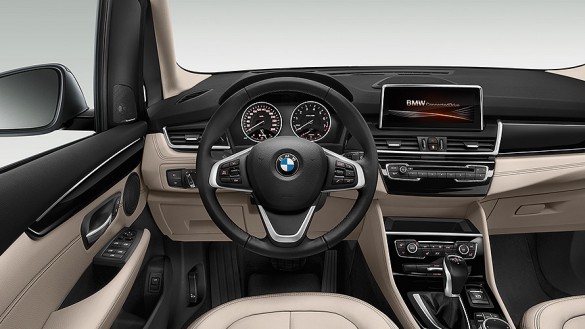 Ý tưởng về chất liệu cho chiếc BMW 2 Series Active Tourer tập trung vào việc thể hiện phong cách thể thao-hiện đại của xe. Mặt gỗ lát đầy sáng tạo kết hợp với chất liệu vải và da bọc tuyển chọn tạo nên thiết kế nội thất thượng hạng, mang lại cảm giác cực kỳ rộng rãi và thoải mái.