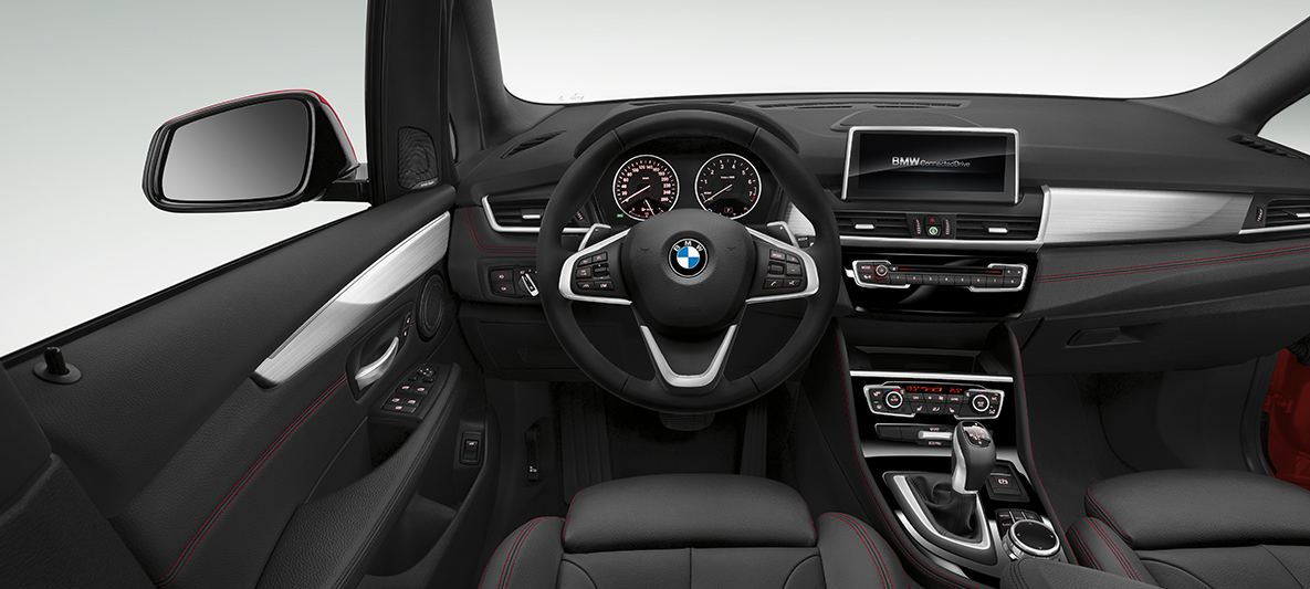 Với dáng vẻ “cơ bắp” và năng lượng vô biên, chiếc BMW 2 Series Active Tourer hiện diện như một biểu tượng của phong cách thiết kế thể thao. Tuy nhiên, bạn vẫn có thể tăng thêm nét thể thao mạnh mẽ cho chiếc xe của mình – với gói trang bị dòng Sport, bao gồm các chi tiết thiết kế nổi bật cho cả nội thất lẫn ngoại thất của xe. Với các bánh xe hợp kim nhẹ độc quyền, Sport Line ngay lập tức khoác lên xe một cảm giác năng động và thể thao vô cùng ấn tượng. Các cửa hút khí độc đáo bố trí hai bên và những thanh tản nhiệt hình bầu dục là nét đặc trưng cho dòng trang bị này - tất cả đều phủ màu Đen bóng loáng - làm nổi bật tính năng động đầy ấn tượng, hài hòa với màu Đen bóng của chi tiết nhấn ở chắn bùn sau. Nắp gương chiếu hậu có thêm tùy chọn màu đen và phụ kiện trang trí ống pô màu đen mạ crôm góp phần hoàn thiện nét thẩm mỹ và tăng sức hút của xe. Lớp bọc ngưỡng cửa trước Sport Line với dòng chữ "BMW Sport" đảm bảo tính năng động theo truyền thống BMW được nhận biết ngay từ ánh nhìn đầu tiên. Ghế ngồi thể thao với vải bọc Race đặc trưng của Sport Line và bảng điều khiển bắt mắt với đường may tương phản đầy ấn tượng, trong khi bảng điều khiển trung tâm Sensatec đồng màu với vải bọc ghế ngồi. Các chi tiết màu Crôm Ngọc trai trên ngăn chứa đồ và lỗ thông hơi và các chi tiết trang trí nội thất màu Đen bóng loáng trên bảng điều khiển và cửa xe càng làm tăng thêm vẻ cao cấp của nội thất. Sợi quang học LED độc quyền trang trí viền cửa, cũng như chìa khóa xe với các chi tiết trang trí màu crôm nhấn mạnh vẻ tinh tế của xe.